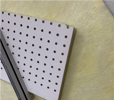 本廠專業生產厚度8mm穿孔石膏板/8.5mm穿孔石膏板/9mm穿孔石膏板/9.5mm穿孔石膏板/10mm穿孔石膏板/12mm穿孔石膏板產品尺寸:1200*2400、1200*2700、1200*3000mm,可定做其它尺寸石膏板穿孔后,石膏板上的小孔與石膏板自身及原建筑結構的面層形成了共振腔體,聲音與穿孔石膏板發生作用后,圓孔處的空氣柱產生強烈的共振,空氣分子與石膏板孔壁劇烈摩擦,從而大量地消耗聲音能量,進行吸聲。這是穿孔紙面石膏板“亥姆霍茲共振”吸聲的基本原理。穿孔紙面石膏板吸聲對聲音頻率具有一定選擇性,吸聲頻率特性曲線呈山峰形,當聲音頻率與共振頻率接近時,吸聲系數大;當聲音頻率遠離共振頻率時,吸聲系數小。如果在紙面穿孔石膏板背覆一層桑皮紙或薄吸聲氈時,空氣分子在共振時的摩擦阻力增大,各個頻率的吸聲性能都將有明顯提高,這就是人們常常在穿孔紙面石膏板后覆一層桑皮紙或薄吸聲氈增加吸聲的原因。