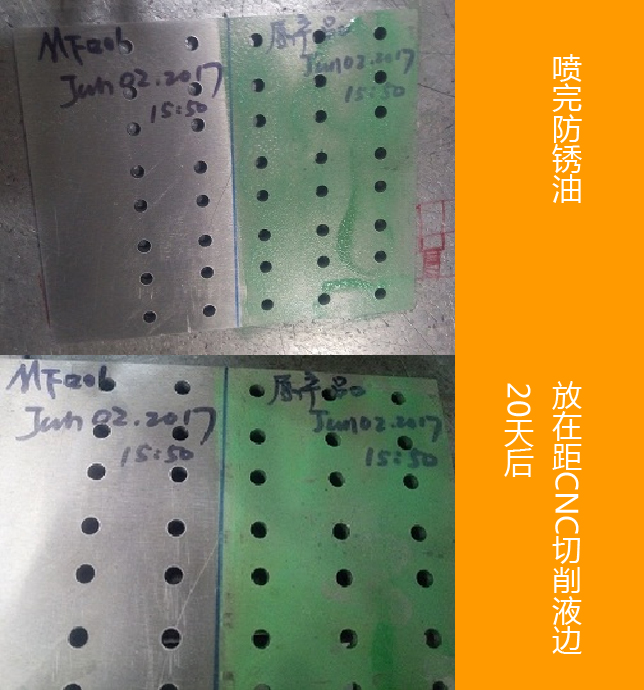 上圖顯示CORRO-001防銹劑防銹效果非常理想,早符合PAHS,ROHS,正己烷含量各種要求,在現今環保要求日趨嚴格的情況下,用得經濟,買得安心。