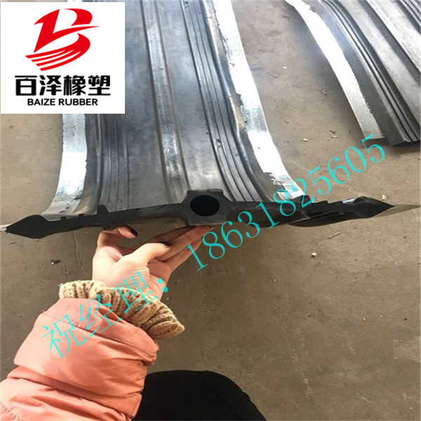 鋼邊橡膠止水帶選用鍍鋅鋼邊;橡膠:通常選用天然橡膠、氯丁橡膠、三元乙丙橡膠等。要求橡膠和鋼邊能有效地粘結,它們之間的粘結強度(剝離強度)應達80~10N/2.5mm,以使它們在外界條件變化情況下不被拉脫。通常鋼邊邊緣沒有工藝孔,安裝澆筑混凝土時,利用工藝將止水帶和鋼邊用細鐵絲纏繞固定,以保證澆搗密實,使鍍鋅鋼片和混凝土有效地牢固粘附。本產品主要用于混凝土現澆時設在施工縫及變形縫內與混凝土結構成為一體的基礎工程,如地下設施、涵洞、輸水渡槽、攔水壩、貯液構筑物等。