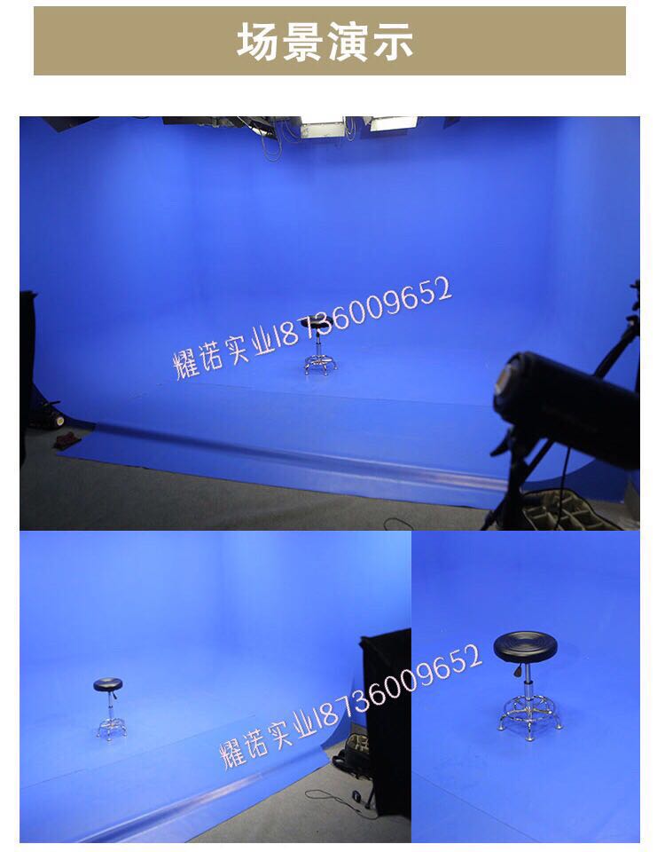 4、 直接鋪到藍箱或綠箱地面,不會出現皺紋,每年可以為藍箱綠箱維護省下一大筆費用(地面經常踩壞,修補,補膩子,刷漆,影響節目拍攝而煩惱),不用再使用幕布(皺),或者透明桌布鋪上去反光。