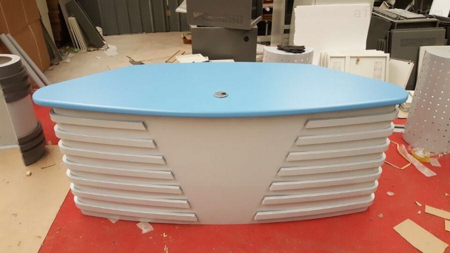 播音桌顧名思義是用于演播室的桌子,每個演播室的大小、尺寸、背景形象、主題色調(diào)以及舞臺形狀不一,演播桌的尺寸及設(shè)計上就有特殊的要求,不能像普通家具一樣量產(chǎn)。同時,選擇播音桌時一定要注意,臺面一定是要亞光,如果臺面反光的話會影響到演播室錄制效果。