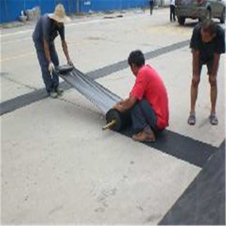經過多次道路試驗和實地勘察,防裂貼具有優異的防裂效果,2mm厚度的防裂貼,其抗拉強度≥600N/50mm,產品延伸率≥30%。當水泥混凝土裂縫變形時,由于“防裂貼”基材的抗拉強度大于粘接強度,使原來集中的應力,通過防裂貼的覆蓋層得到了分散,防止和縮小了瀝青混凝土產生裂縫的可能性。其優異的低溫柔韌性,抵抗上下剪切性好,當相鄰水泥混凝土板塊,在一定范圍內上下反復切時,由于采用的增強纖維具人優異的抗折性及延伸性。因此,不易使“防裂貼”折斷,保持“防裂貼”具有很好的自粘封閉性,隔斷了地表水侵蝕水泥混凝土板塊伸縮縫(裂縫)內、確保地基穩固,減少了產生裂縫的因素。優良的粘接性能、抗穿孔性和防水密閉性,有效的防止地表水滲入到水泥混凝土板塊裂縫,提高了地基的穩固。特別當受到行駛車輛的水平推力后,由于其覆蓋層具有良好的自粘性和柔軟性,保證了防水密閉性。大大改善了防水、防印面水分入滲對水泥混凝土板裂縫的產生,提高了堅實的基礎。