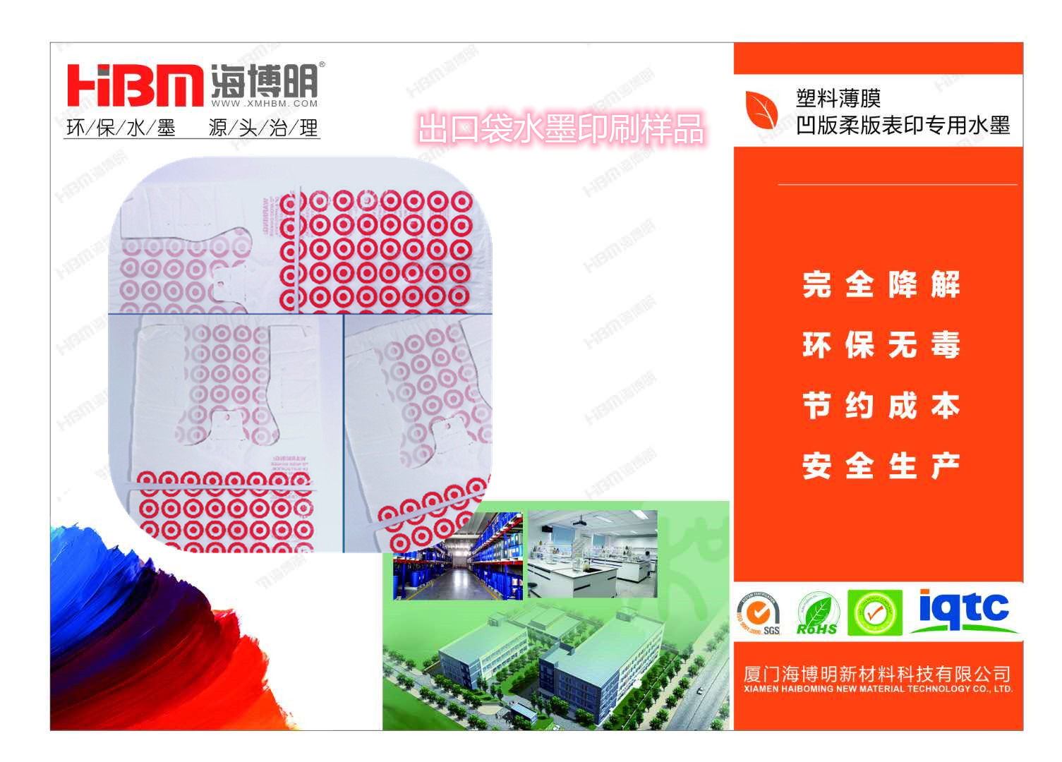 海博明水墨固含量及色含量高,粘度低,流動性好,印刷省墨,加水或者酒精就能印刷,適合凹版表印印刷。優異的附著力及耐水性。色彩展色力強、表面光澤度高。 粒徑小,粒子分布均勻,淺網轉移清晰,無需改版,干燥快,流平佳,是溶劑型油墨的理想替代品。耐磨特性強,具有優異的轉印性。印刷適應性強,適印于OPP、HDPE、LDPE、PEVA、PP珠光合成紙等不同塑料薄膜上的印刷,滿足客戶需求。HPDE水墨、LDPE水墨、馬甲袋水墨